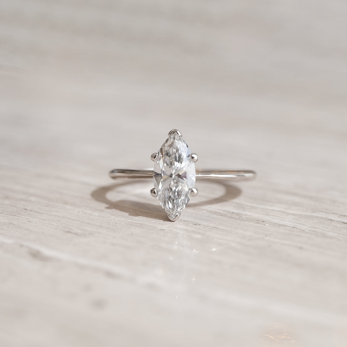 Anillo con diamante certificado IGI Marquisse 1ct montado en oro 14k,