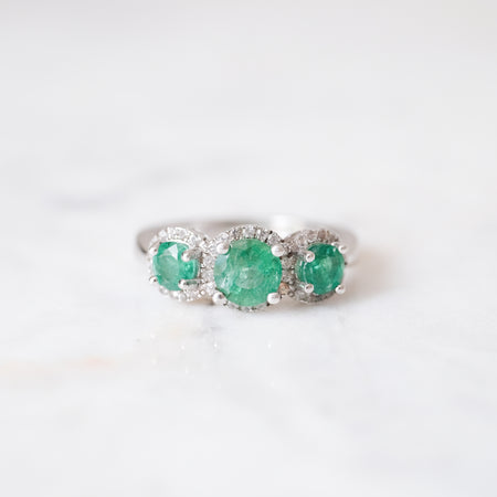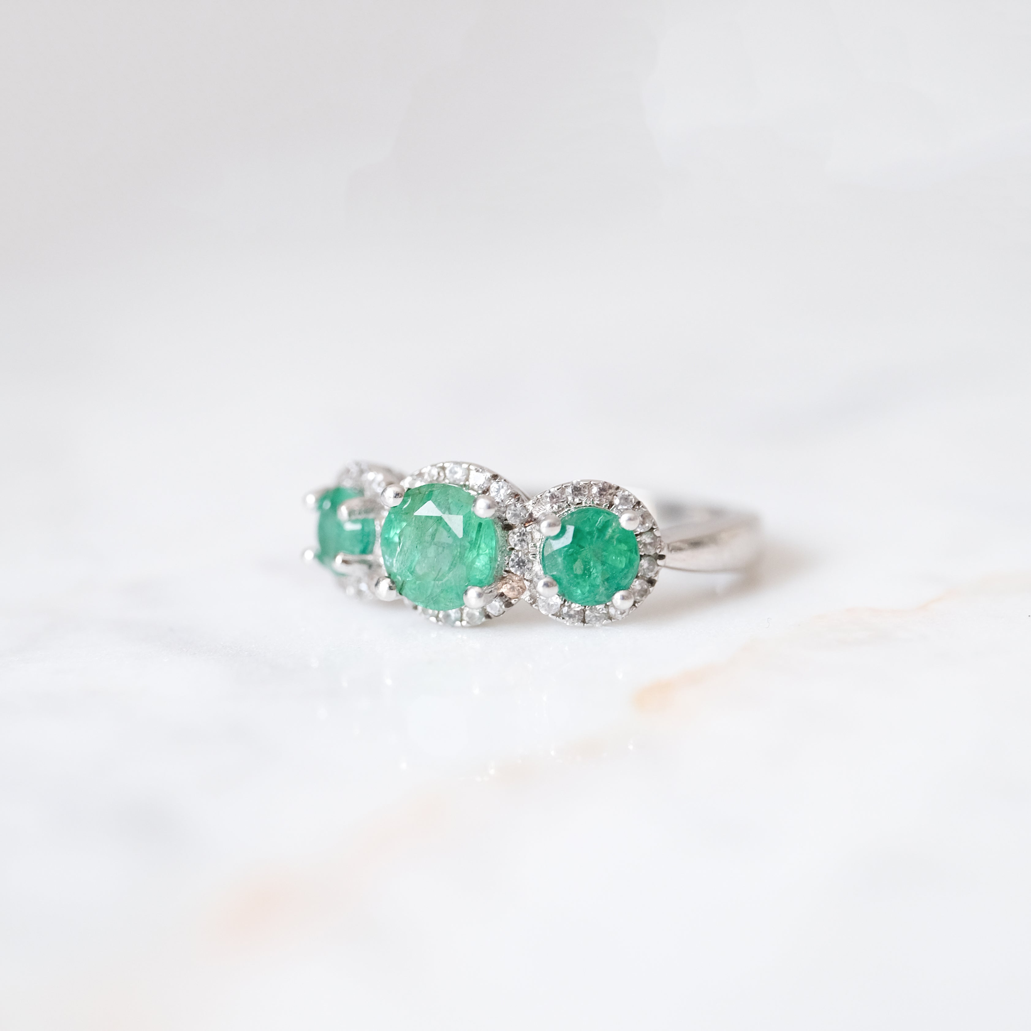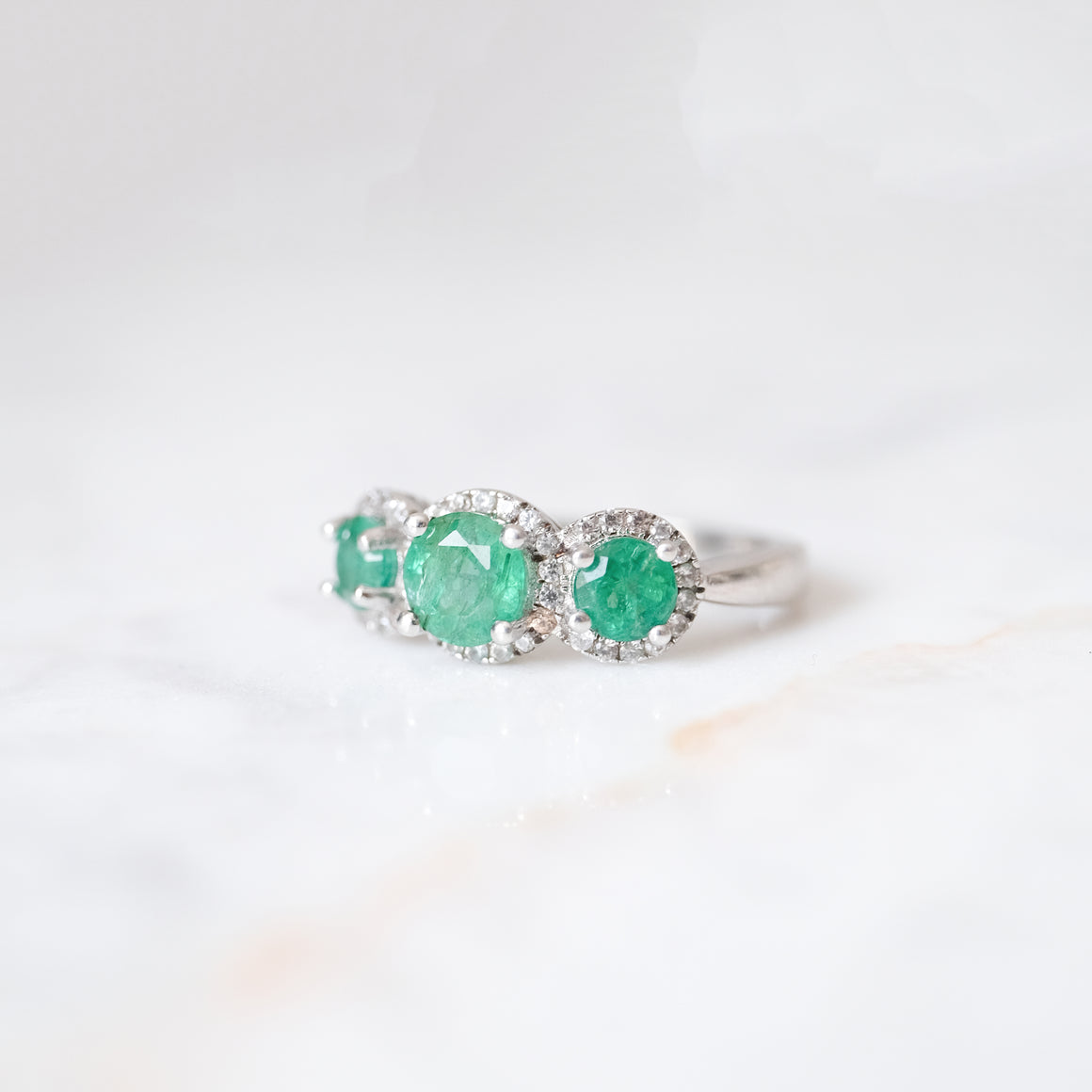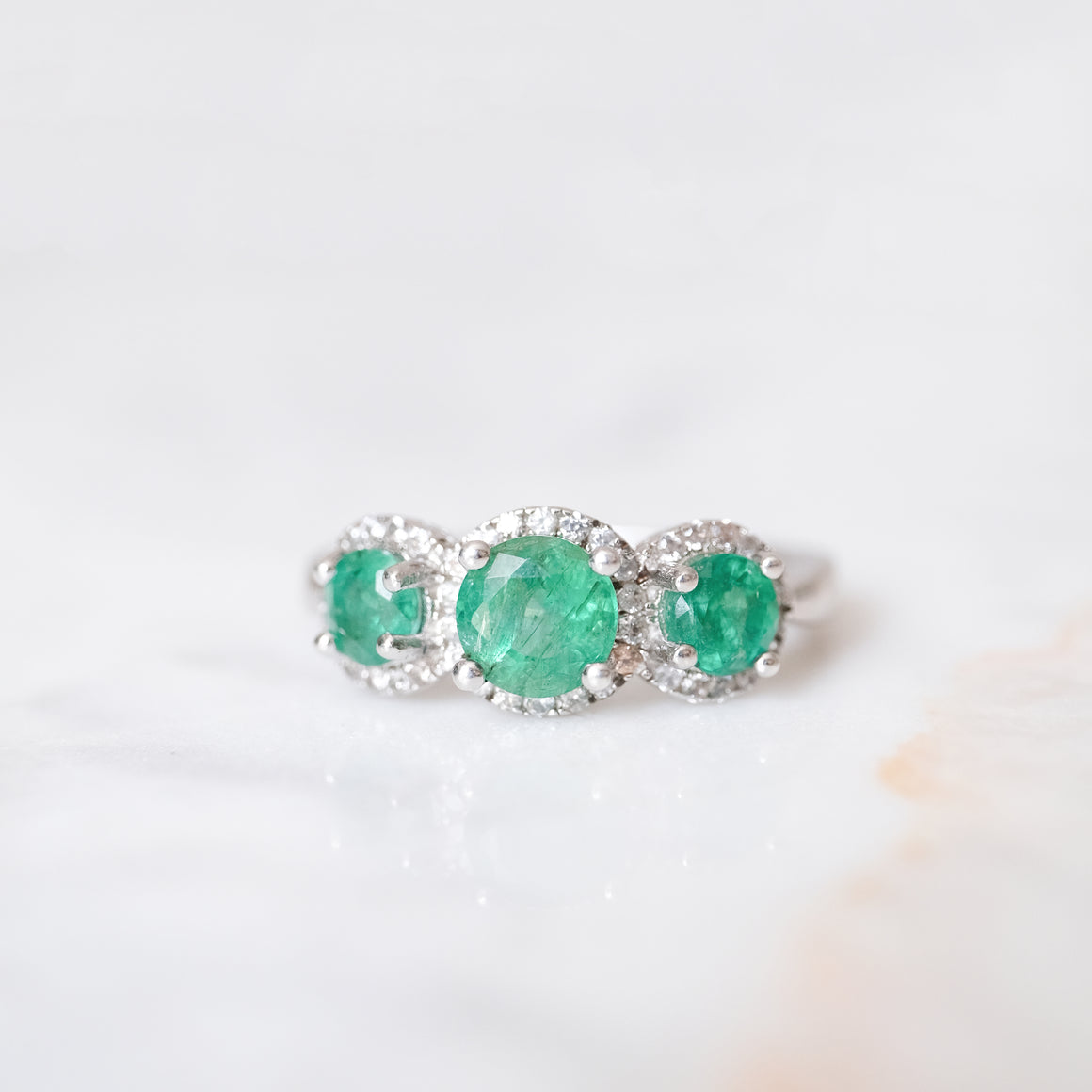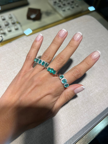 Anillos de plata con esmeralda natural de Zambia. El modelo del medio tiene zirconias.