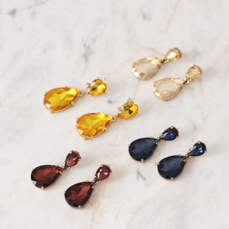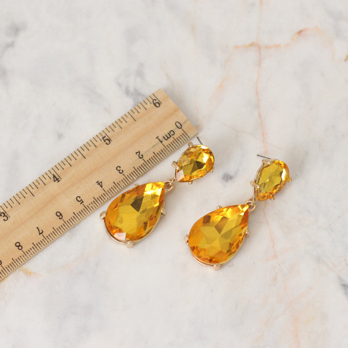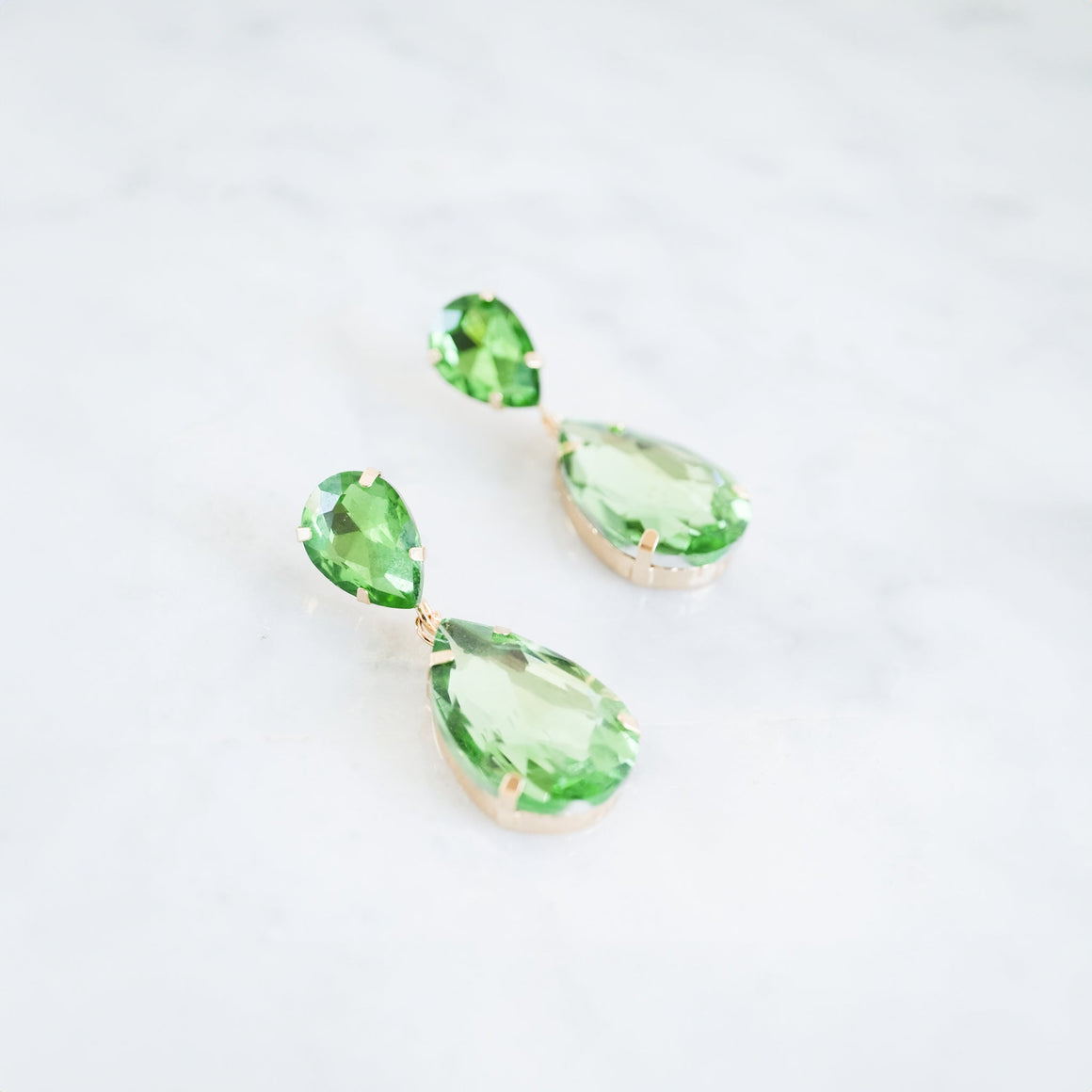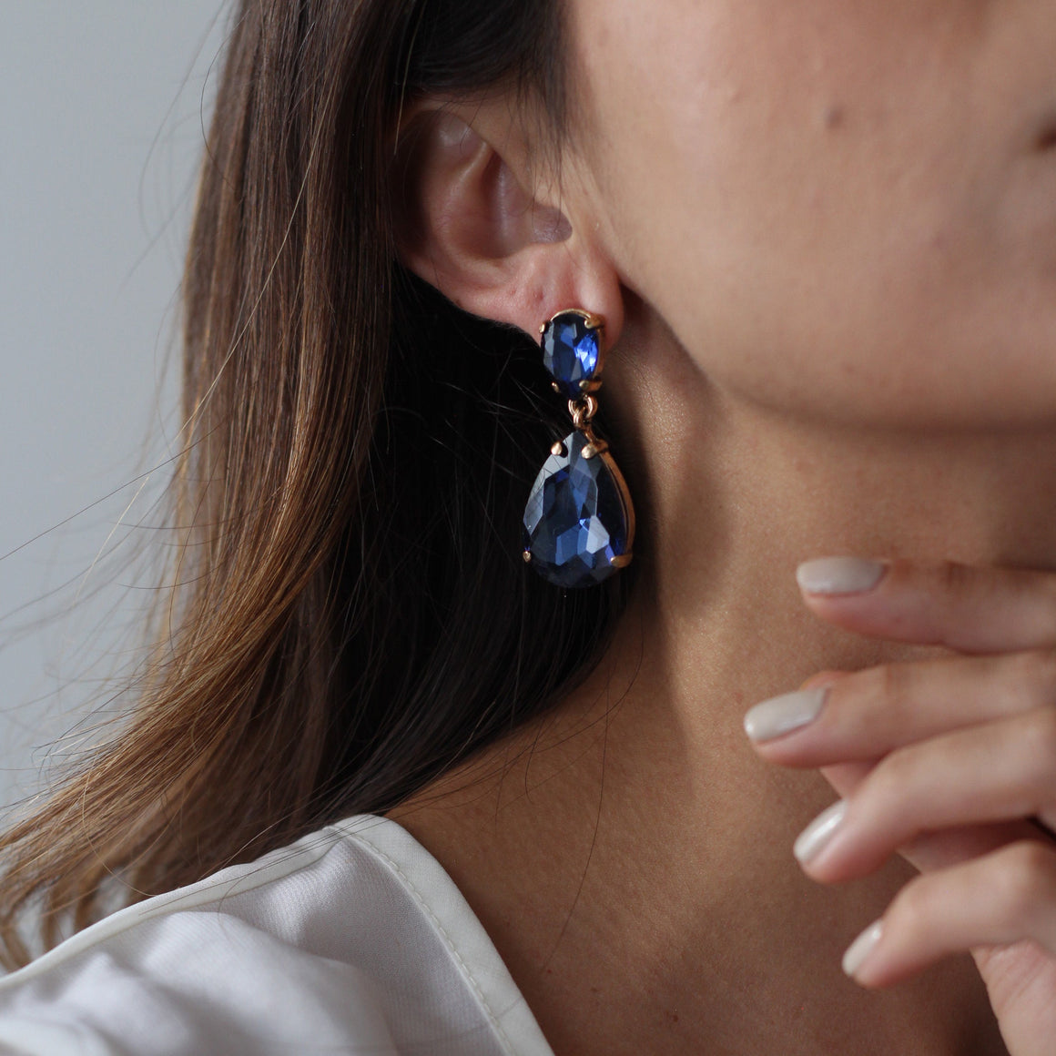 Aretes en baño de oro 22k, adornados con zirconias de distintos colores. Largo 5 cm.