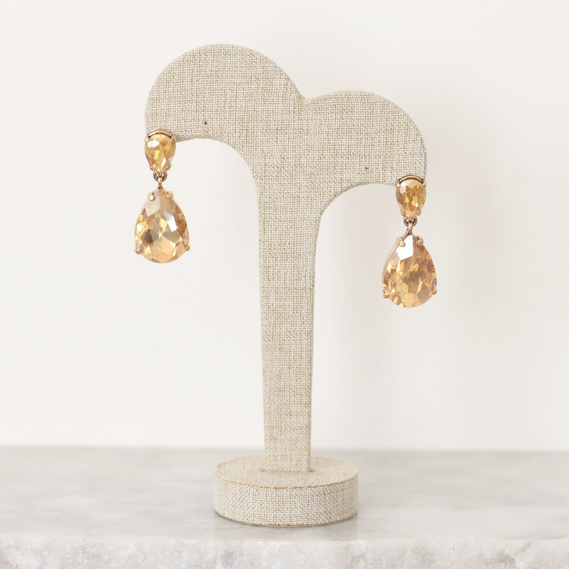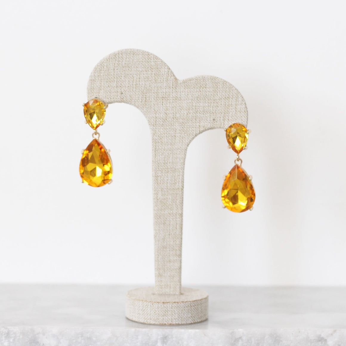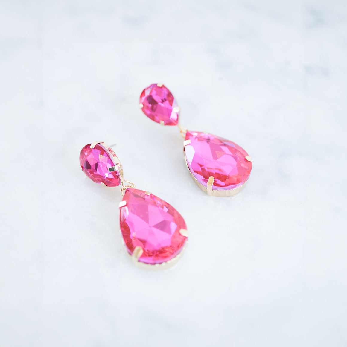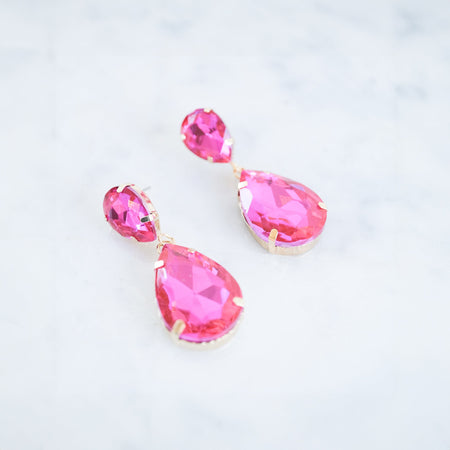 Aretes en baño de oro 22k, adornados con zirconias de distintos colores. Largo 5 cm.