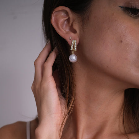 Aretes en baño de oro 22k en tono dorado con perla