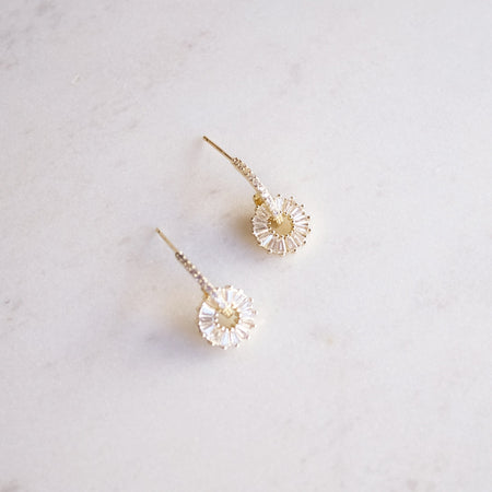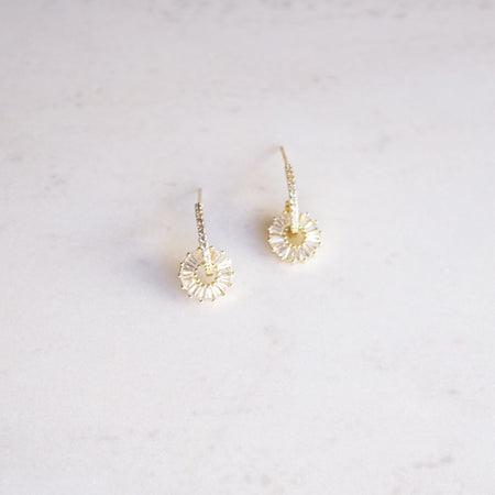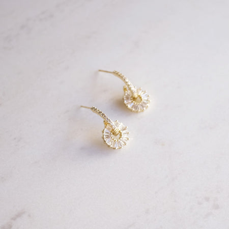 Aretes en baño de oro 22k con cristal cortado. Largo 2 cm.