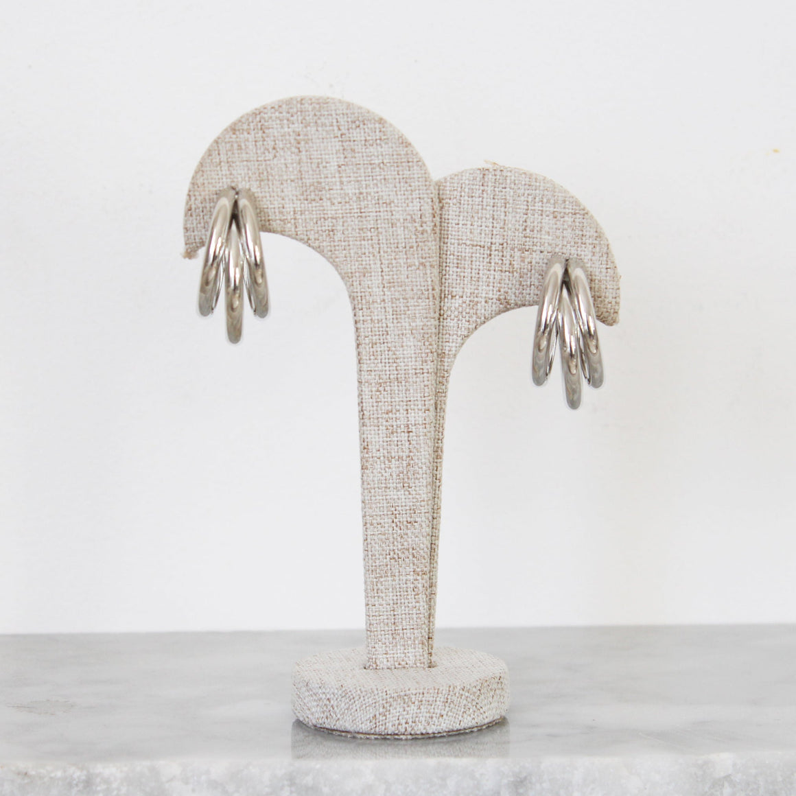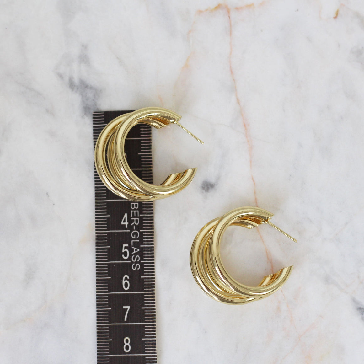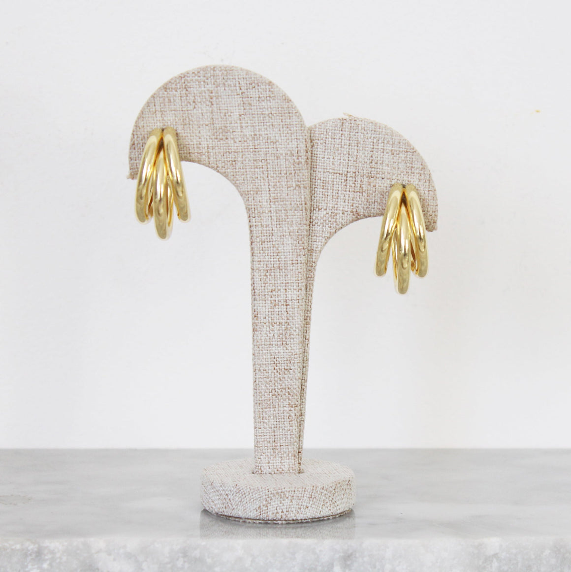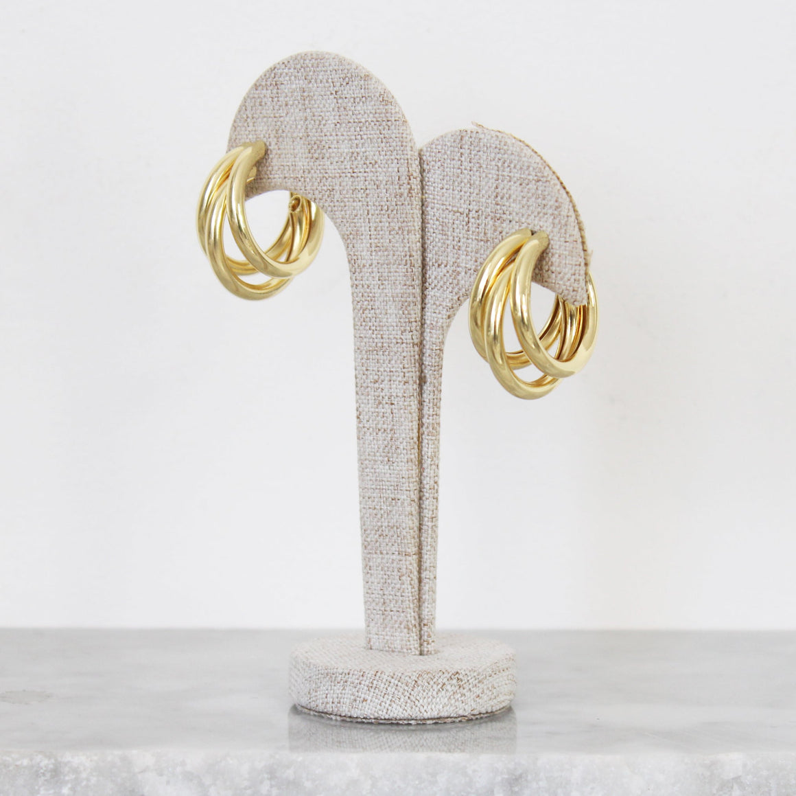 Aretes de aleación con tres aros unidos en tono dorado o plateado