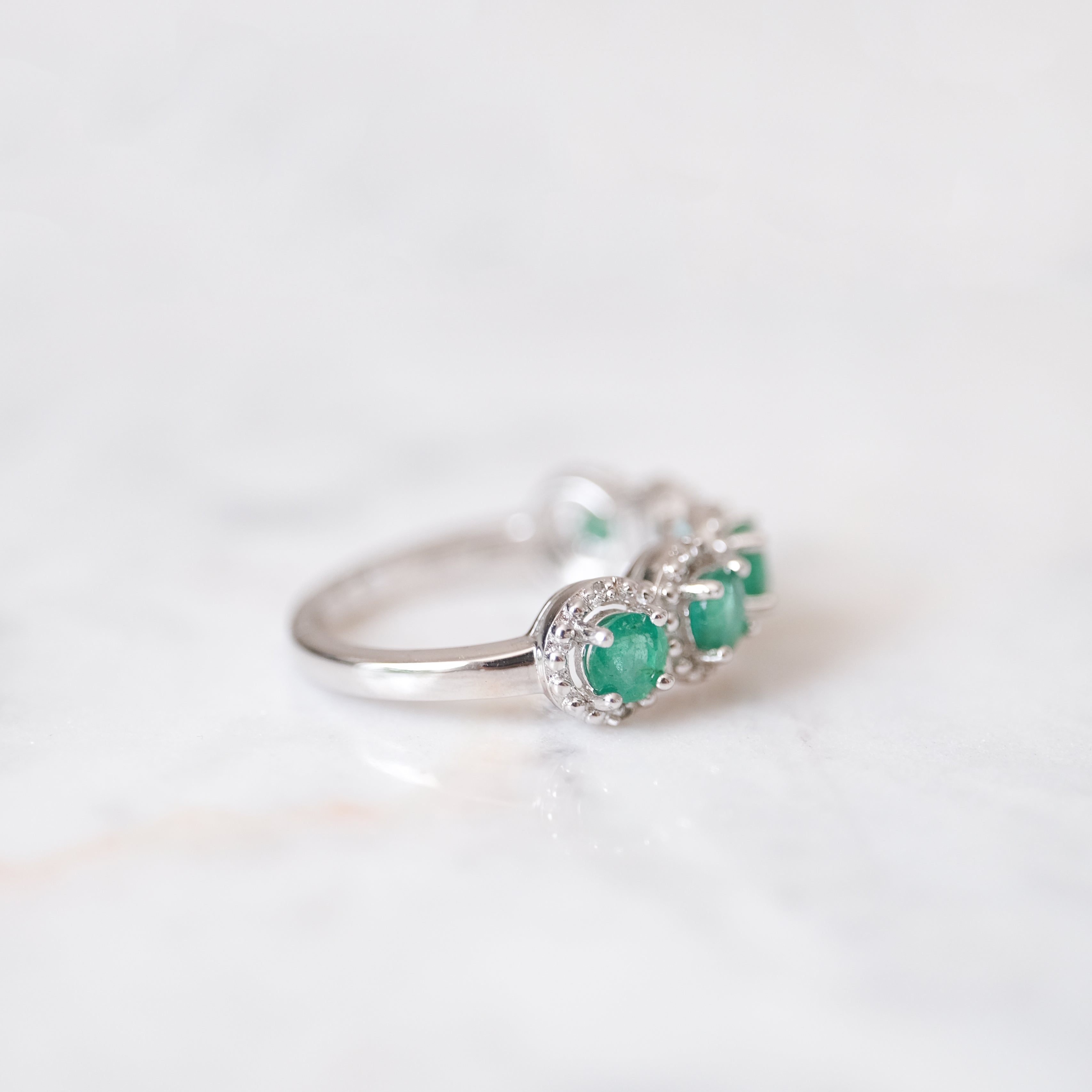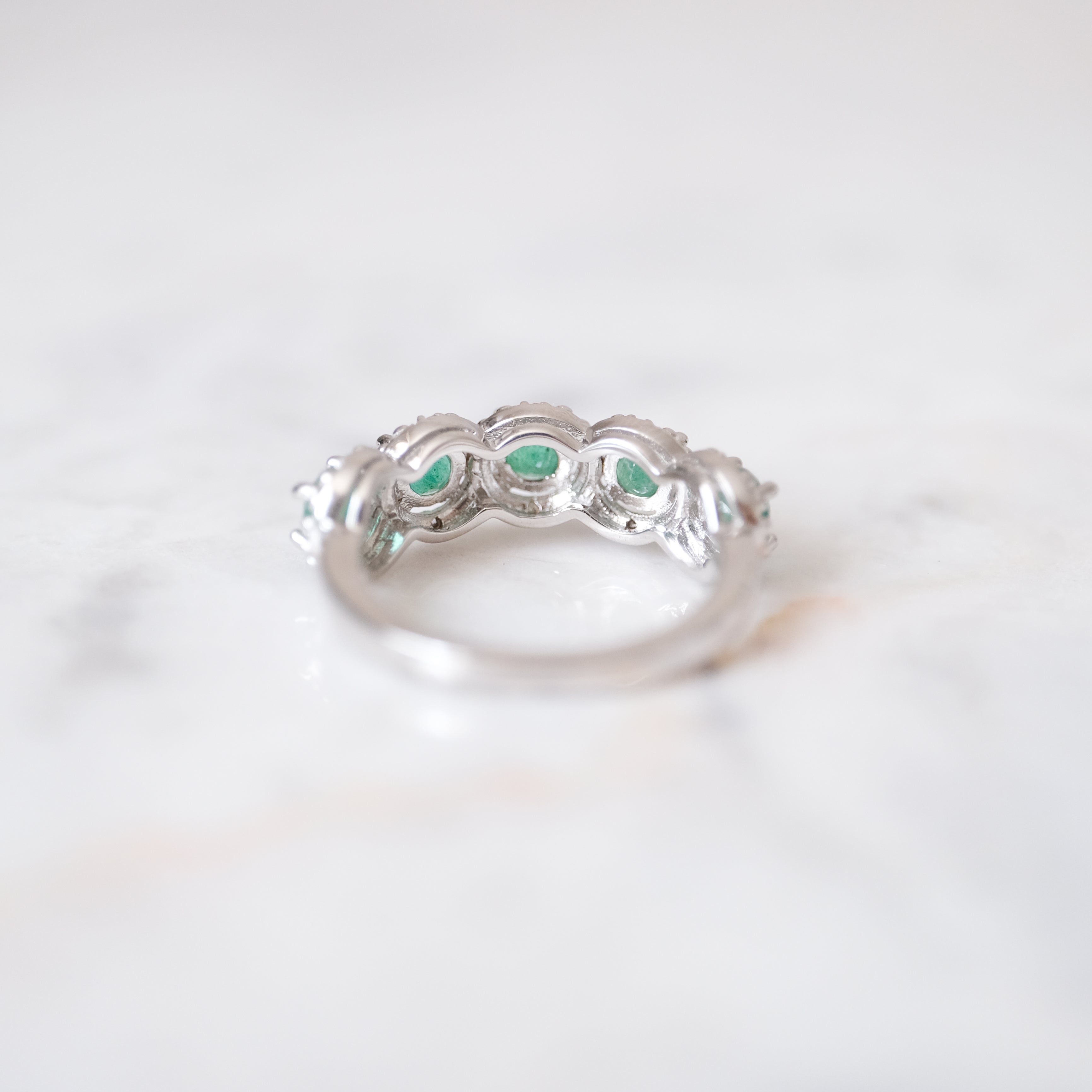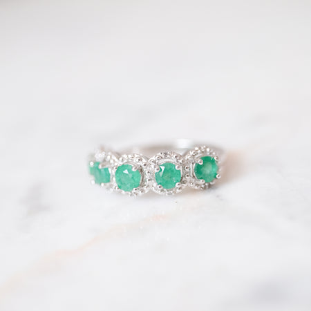 Anillo churumbela color esmeralda con 5 diamantes. Plata.