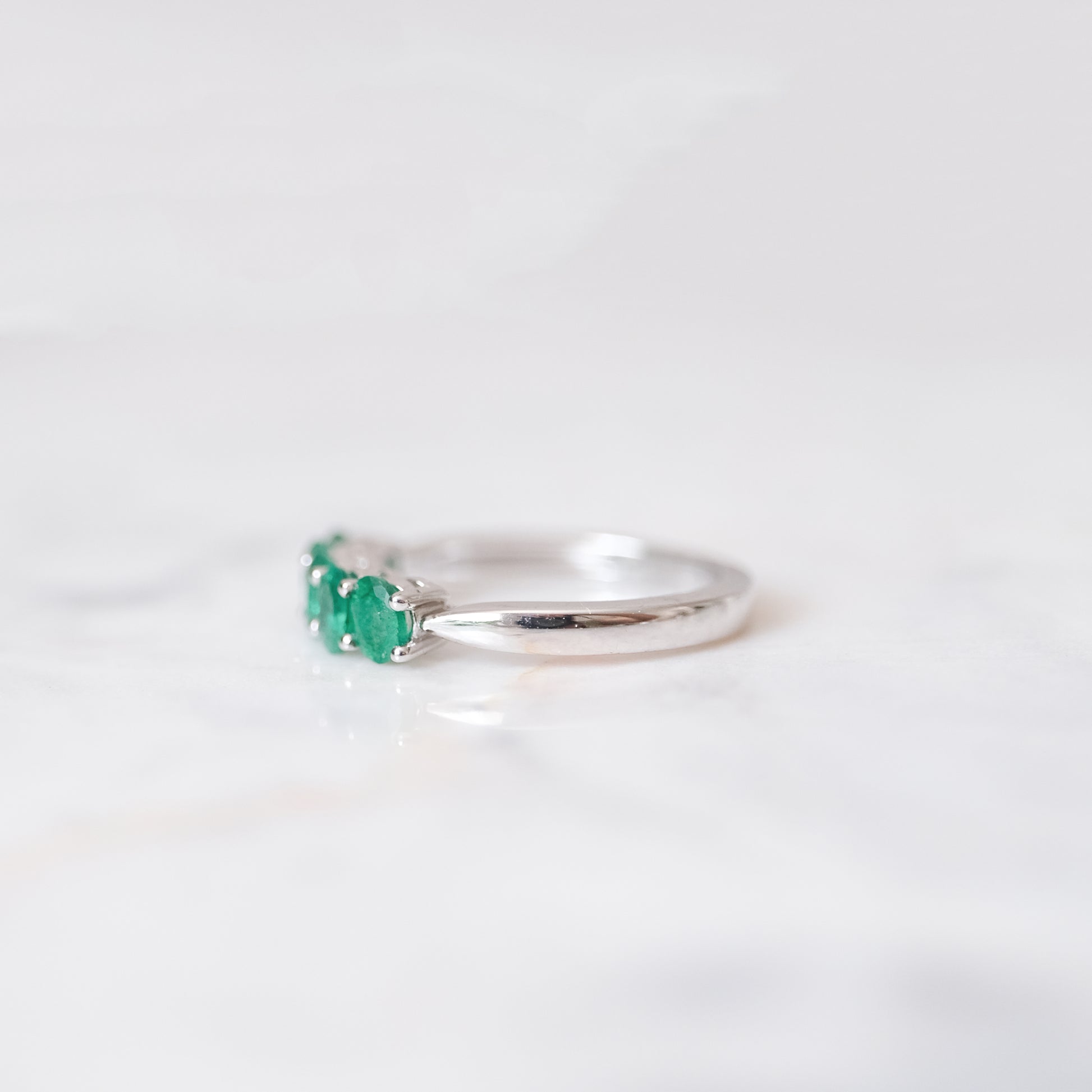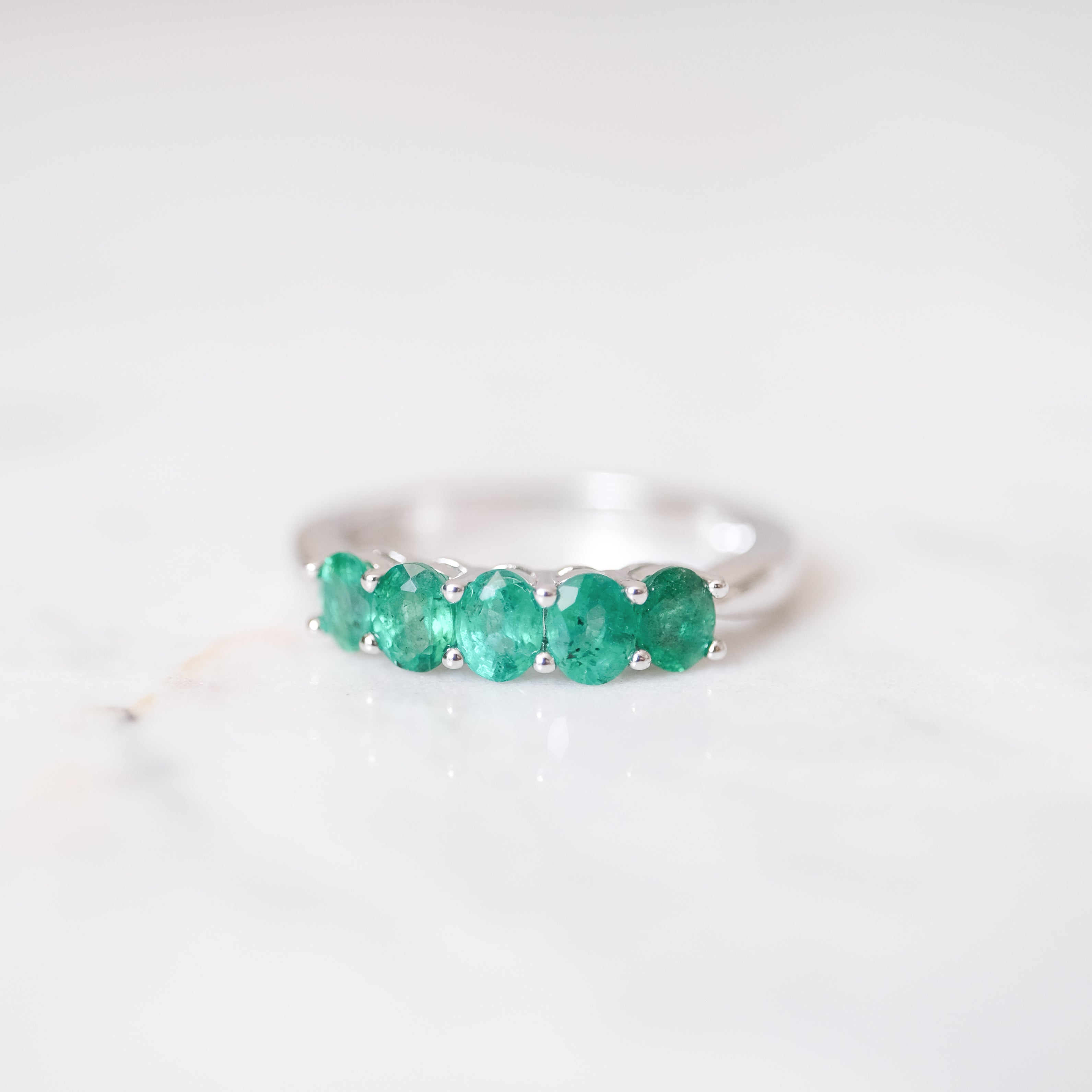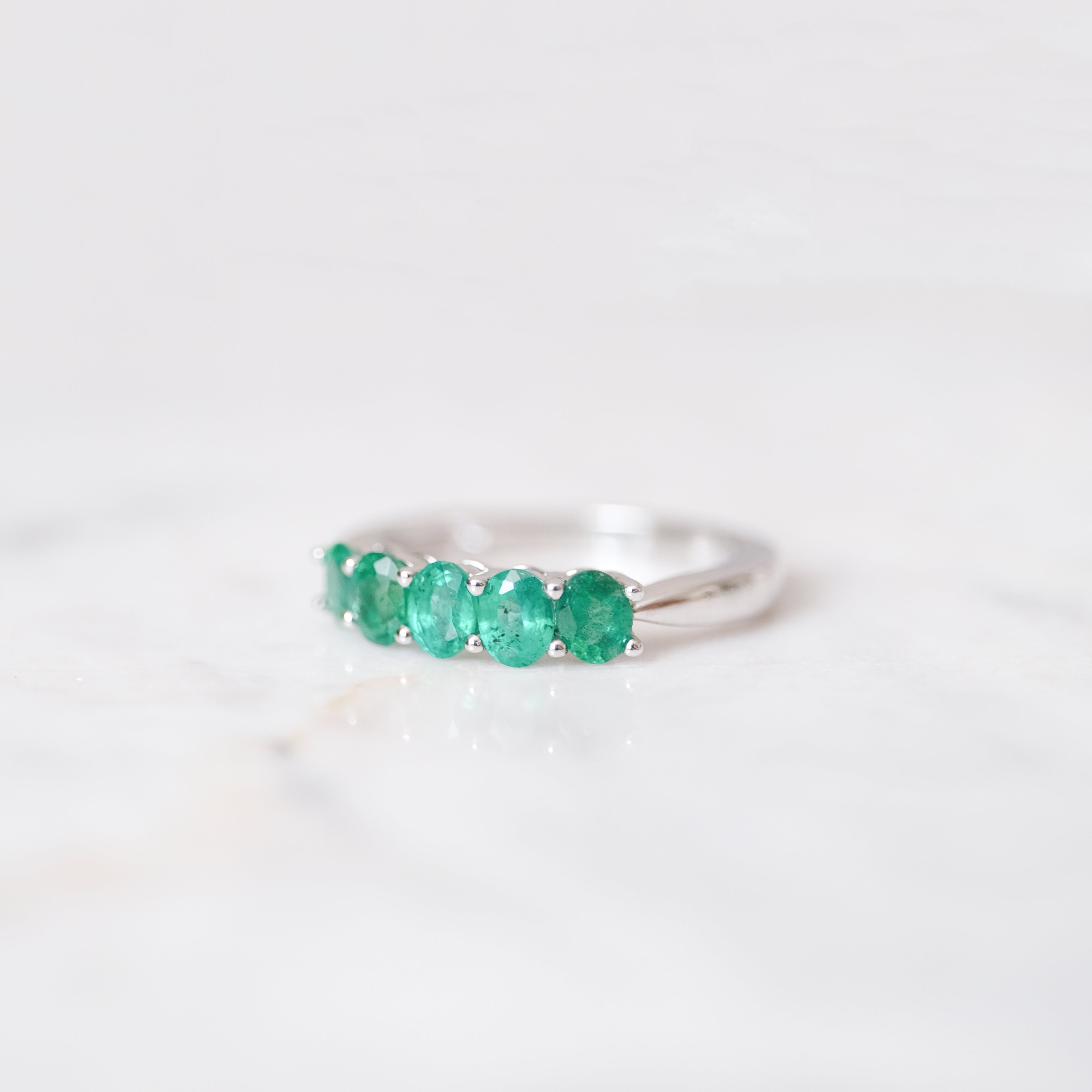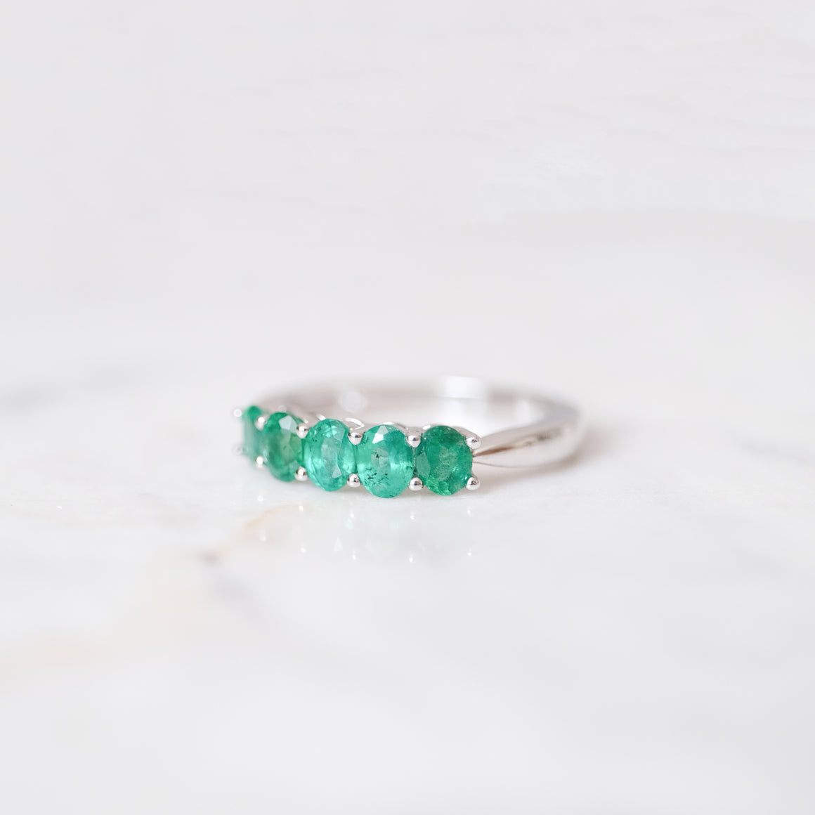 Anillo churumbela color esmeralda con 5 diamantes. Plata.