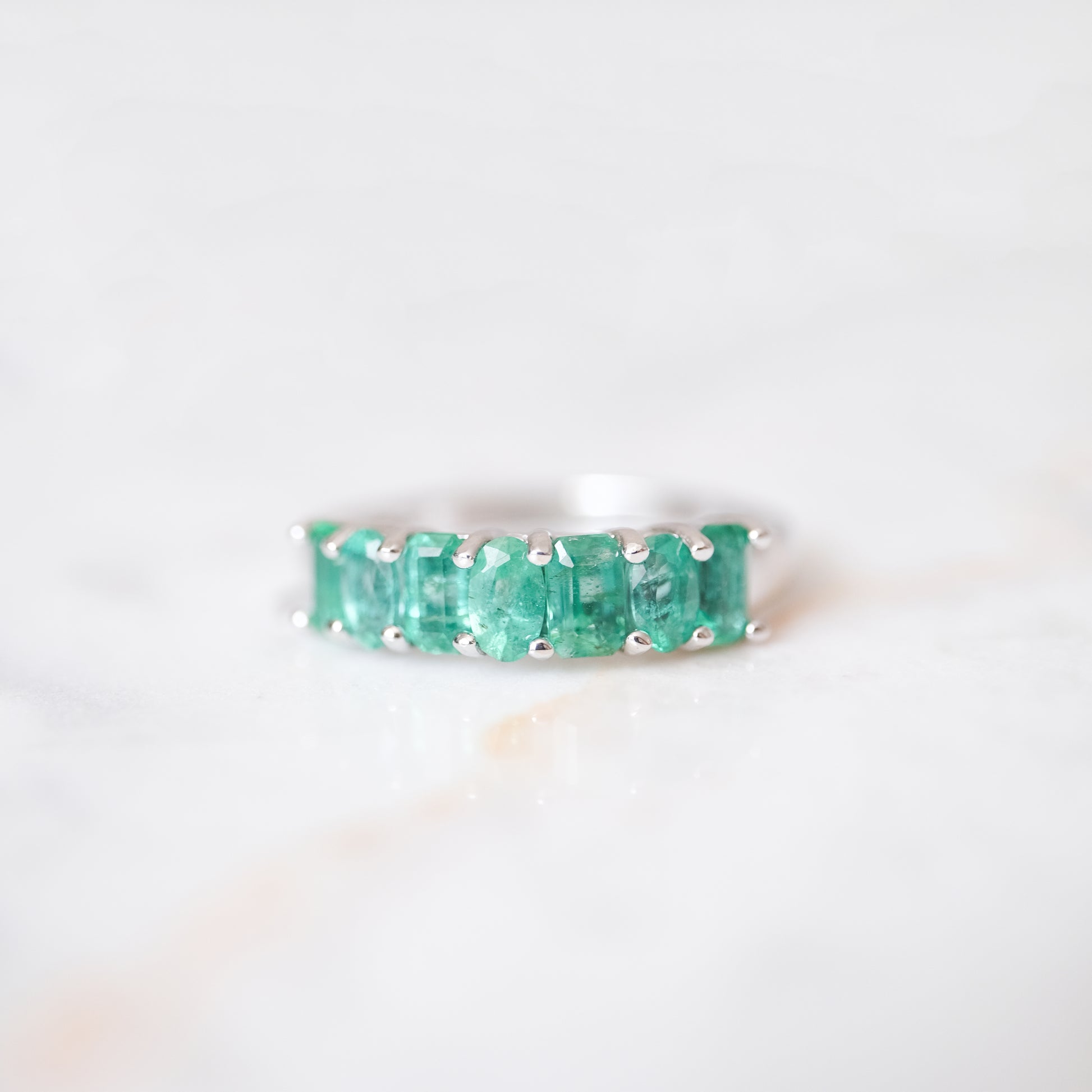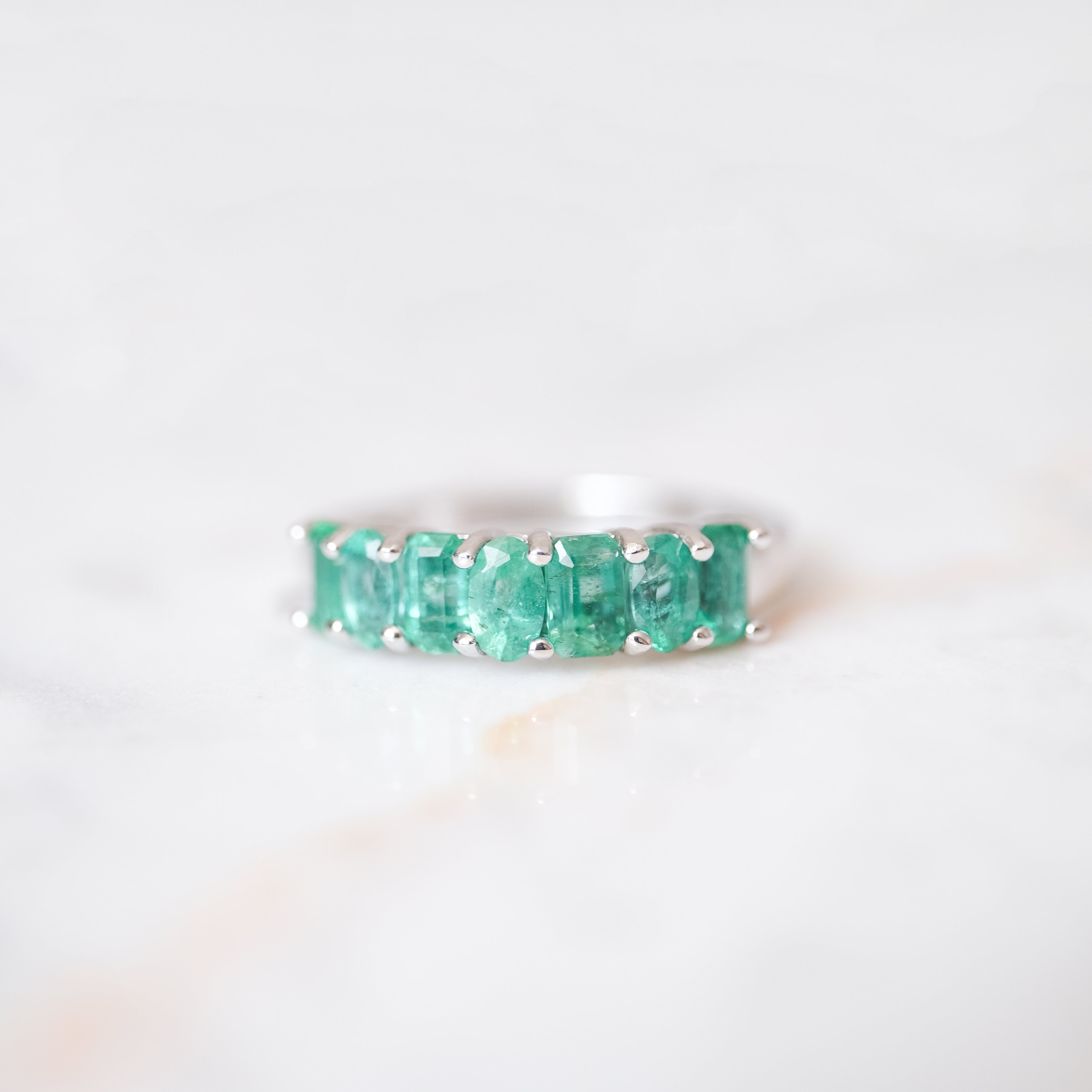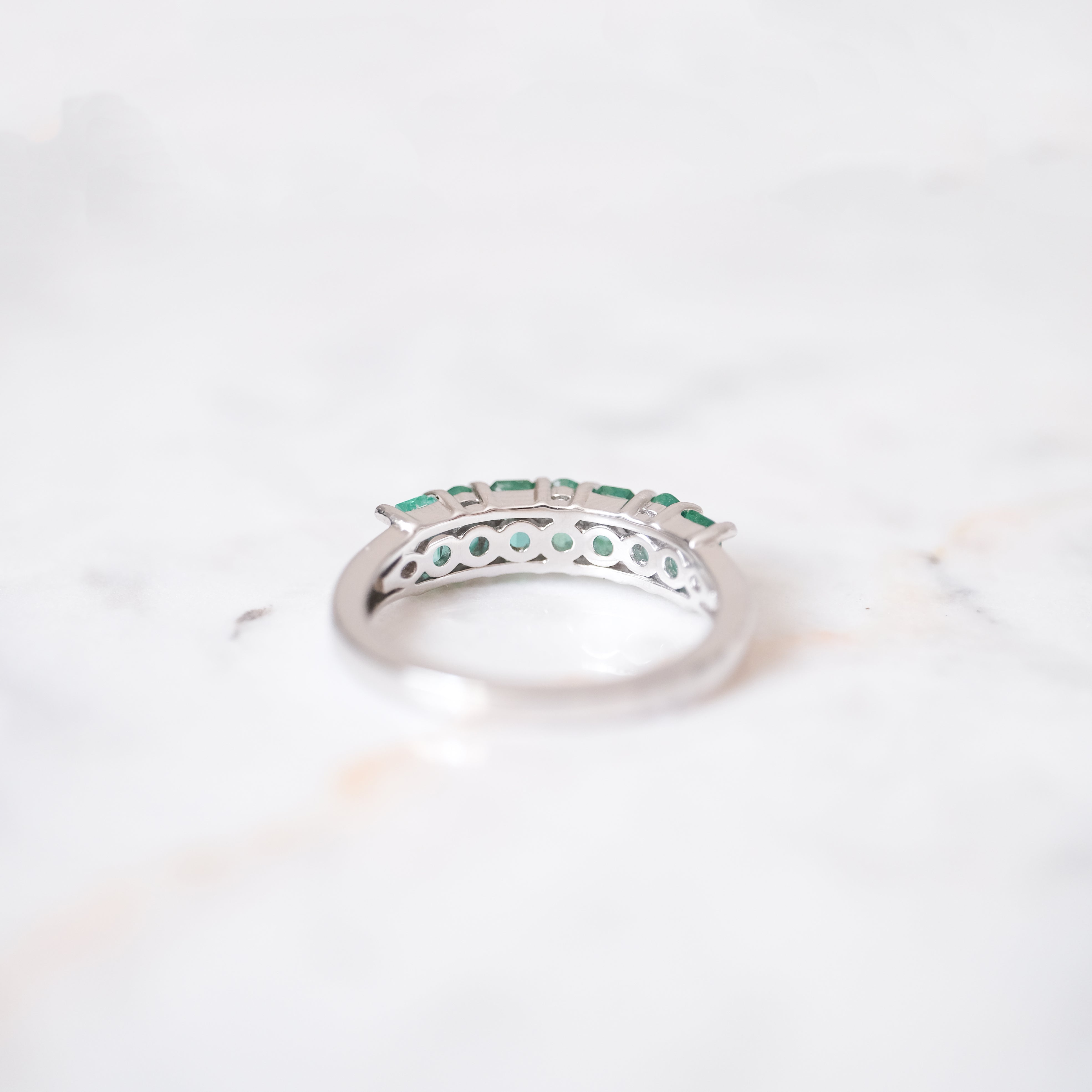 Anillo churumbela color esmeralda con 7 diamantes. Plata.