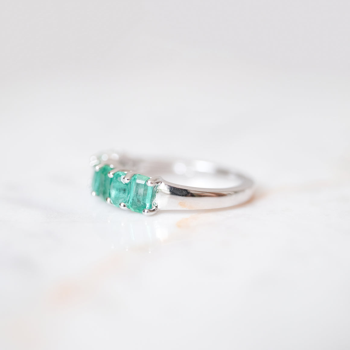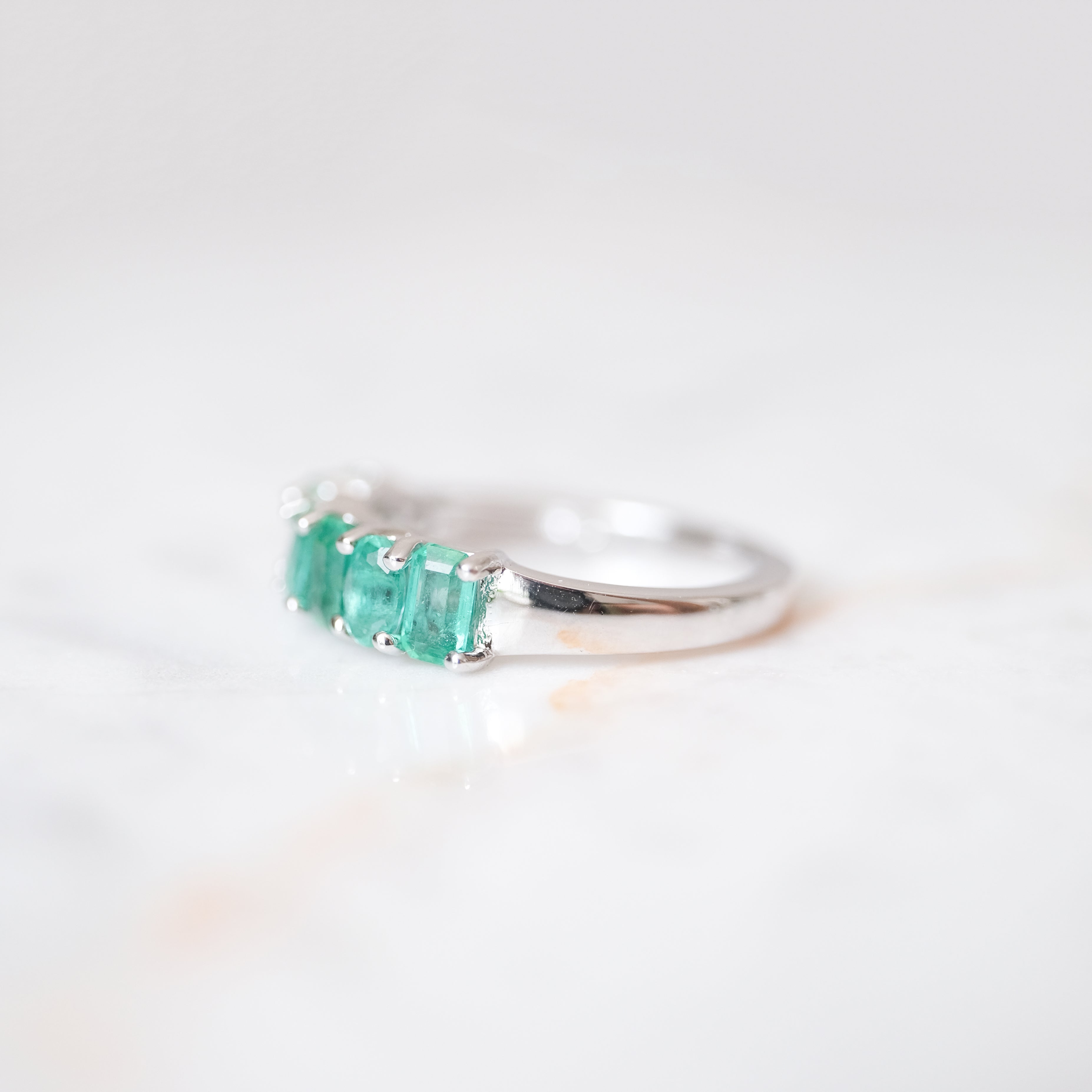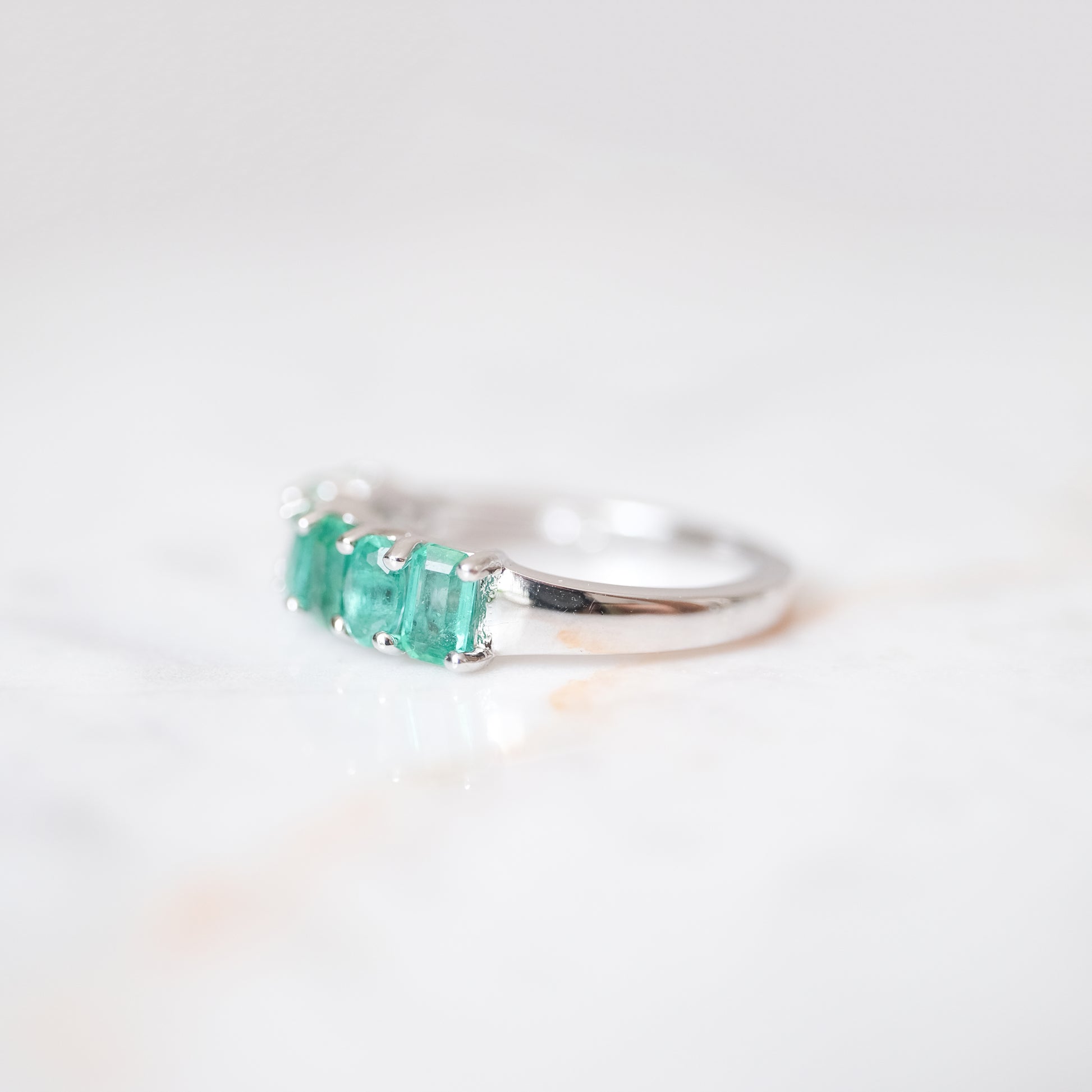 Anillo churumbela color esmeralda con 7 diamantes. Plata.